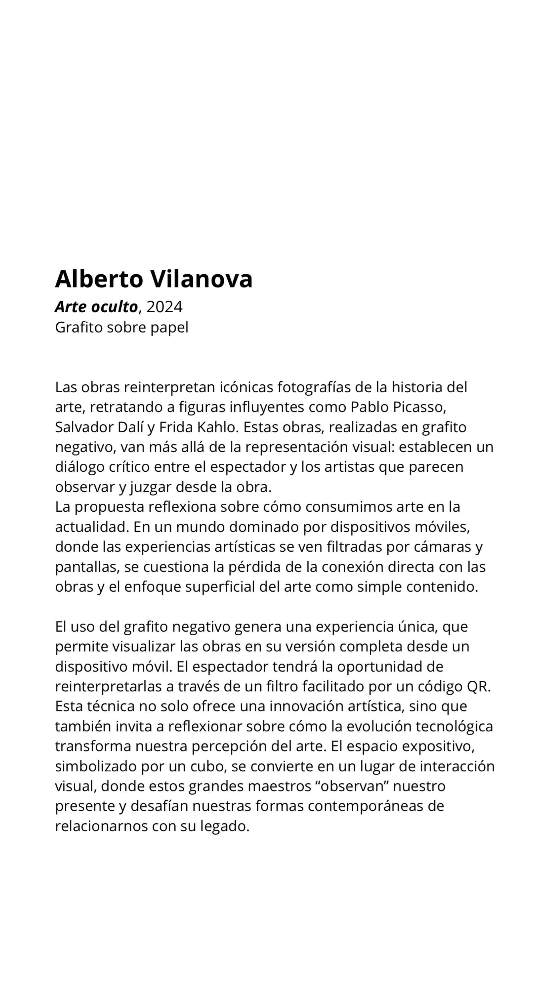 “Arte Oculto” supuso un salto de calidad personal: montar la exposición me permitió valorar la dificultad de transformar una idea en obras a gran escala y cómo el espacio y la luz pueden influenciar el resultado la hora de hacerlo realidad. Contar con el apoyo de familiares y amigos durante el FIG hizo que la experiencia fuese inolvidable. Además, la exposición fue reconocida y premiada como la mejor idea, consolidando este proyecto como un momento clave en mi trayectoria artística.