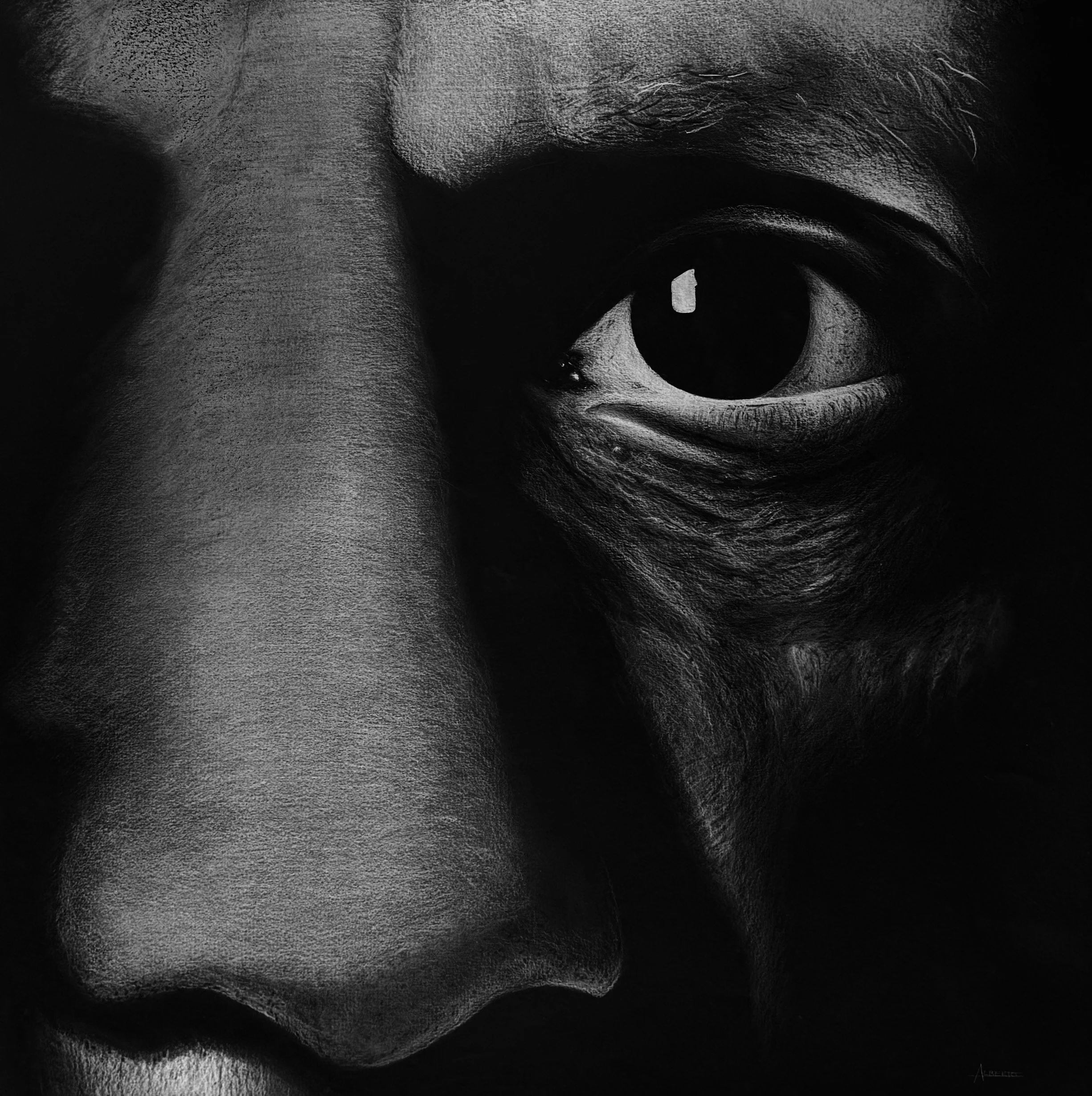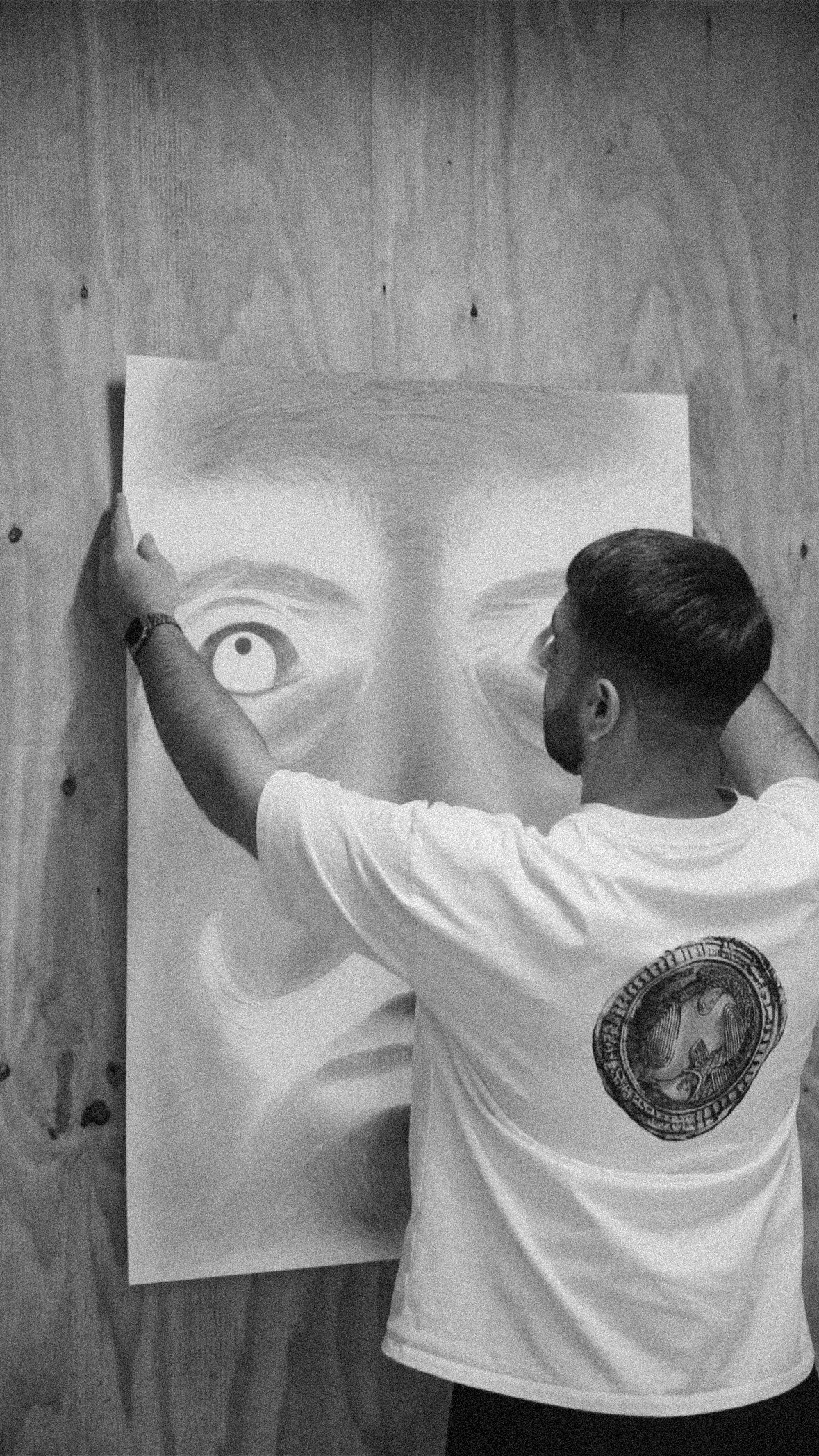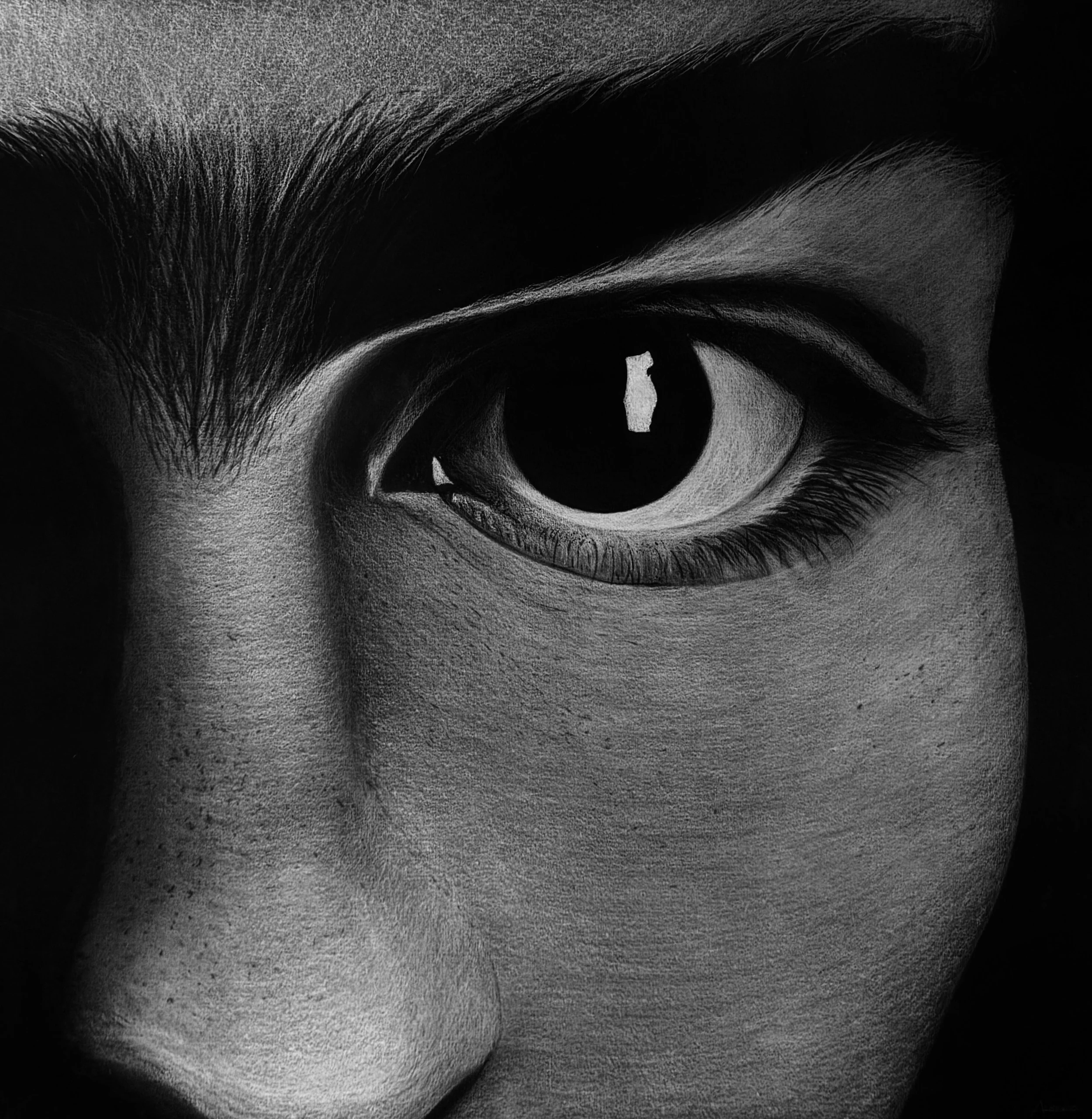 Para la exposición, realicé tres obras icónicas a grafito de Dalí, Picasso y Frida Kahlo, seleccionando sus expresiones más impactantes y recortando las partes más significativas: sus miradas tristes, sus rostros que te confrontan y que despiertan curiosidad. Pintarlas al revés fue un reto enorme: lo negro era blanco, lo blanco era negro, y borrar era pintar y viceversa. Este proceso puso a prueba mi razonamiento y paciencia, haciendo que la creación de cada obra fuese tan intensa como innovadora.